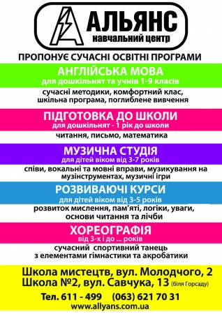 Дитячий навчальний центр «Альянс класс» пропонує сучасні освітні програми для Ваших дітей, головна мета яких – всебічний розвиток дитини, пізнання навколишнього світу, соціальна адаптація у колективі ровесників. Прекрасні професійні педагоги з великим досвідом роботи стануть для Ваших дітей не просто вчителем, а справжнім другом та провідником у новий цікавий світ знань!Пропонуємо Вам детальний опис предметів, фото та відеорепортажи. А ще краще, приходьте до нас на пробний урок, де Ви зможете отримати відповіді на всі питання, а Ваша дитина спробує себе в новій ролі. Сподіваємося Вам сподобається!