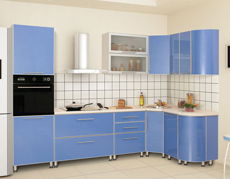 Синий тон,  успокаивает и уменьшает аппетит. Но такая кухня будет смотреться не слишком уютно. Поэтому свой выбор остановить лучше на нежно – голубом тоне, который символизирует чистоту и свежесть. Чтобы лучше сочетались и стены, и мебель можно проконсультироваться с  нашим дизайнером.