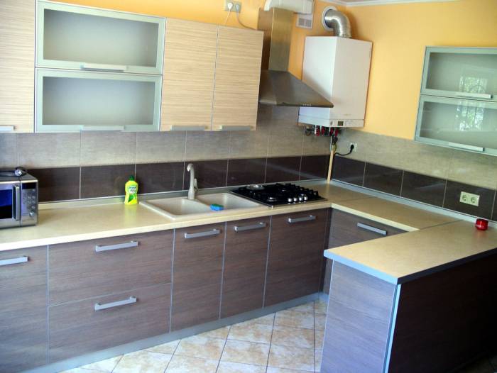 Современная практичная кухня. Сразу же привлечет ваше внимание мягкими, теплыми цветами фасада. Фасад изготавливается из ДСП производства Австрии. Это самая оптимальная кухня - практичность и функциональность.