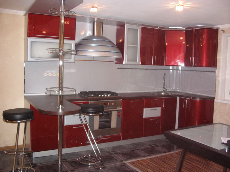 Кухни с гнутыми крашеными фасадами считаются одними из самых популярных среди любителей стиля модерн. Плавные изгибы идеально подчеркивают линии потолка, пола или элементов в дизайне интерьера.